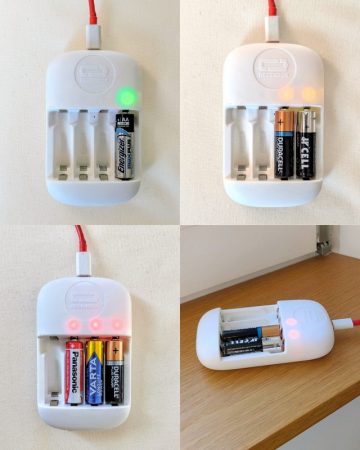 J’ai confié la mission de recharge de nos piles à ma compagne! C’est simple, on avait un sac plein de piles alcalines (une trentaine) qui étaient destinées à la base au bac à poubelles des centres commerciaux dédiés aux piles. Et maintenant, sur les 30 piles, 25 fonctionnent de nouveau depuis le passage à la RegenBox 2! Comment ça marche? C’est très facile!